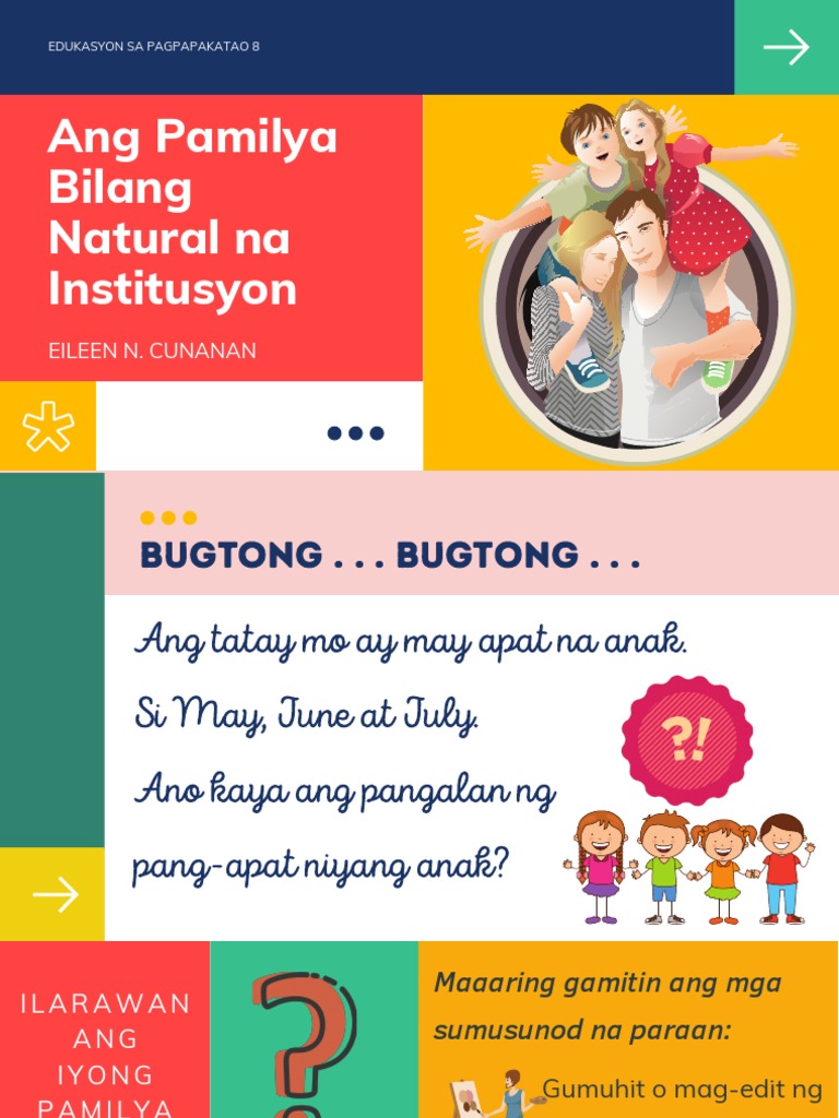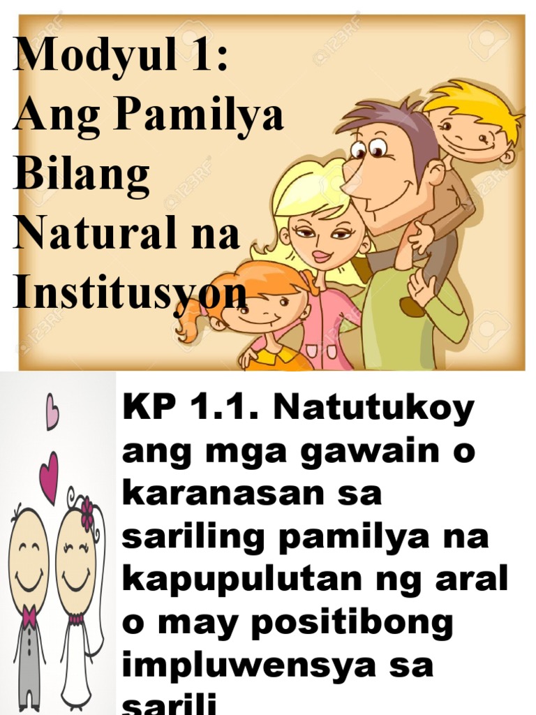 Edukasyon sa pagpapakatao 8 modyul 1 ang pamilya bilang natural na institusyon pamantayang pangnilalaman. Ang Pamilya Bilang Likas na Institusyon Madalas mo siguro makita ang ganitong sticker sa likod ng mga sasakyan. Ang pamilya ay isang institusyon.