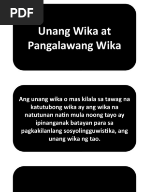 Kung ikaw ay hindi taga Maynila o mga central na bahagi ng Luzon sigurado ay ikaw ay may ibang wikang ginagamit maliban sa Tagalog. ANO ANG UNANG WIKA. UNANG WIKA AT PANGALAWANG WIKA.