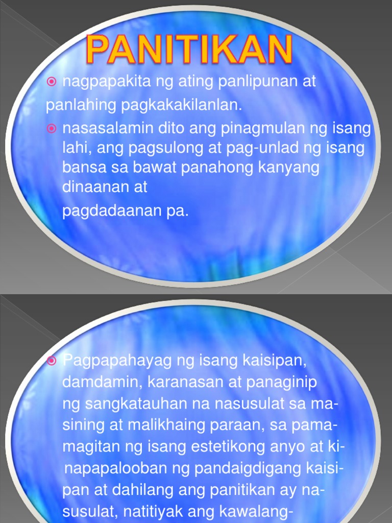 Ito ay kinalap mula sa mga makatang Pilipino na nagpasalin-salin ng mga epiko hanggang sa ngayon. Dati pa lamang magkaugnay na ang kasaysayan natin at ang ating panitikan. Ano ang kahulugan ng sining at panitikan.