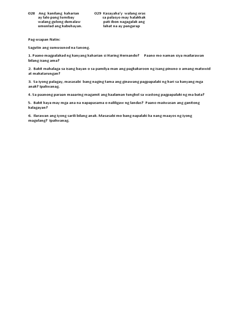 Sa panahon ding ito inilunsad ang. Katinig Patinig IPA Halimbawa English approximation IPA Halimbawa English approximation ʔ buang ˈbuʔaŋ the catch in uh-oh oo oʔo a batok Far b bagay Cavite best ɐ tansô nut d daw do ɛ heto Emong set dʒ diyan. Sa dami ng masamang sinusulat ng mga tao tungkol sa ating inang bayan siguro ay dapat na tayong magbigay ng ating mga opinyon kung paano uunlad ang ating bayan mga alintuntunin.